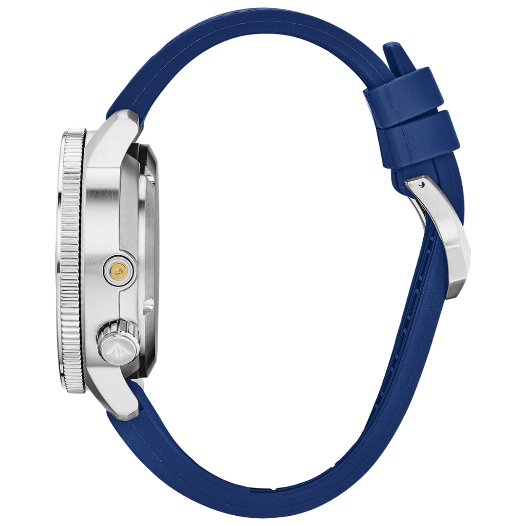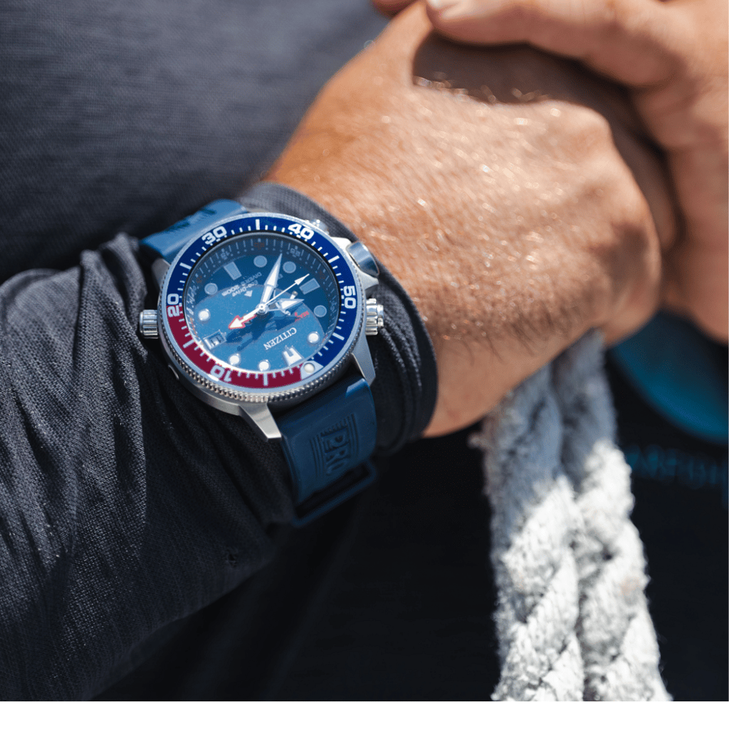 The sleek black dial, accented by a bold bright orange bezel, is housed in a durable 46mm silver-tone stainless steel case. The stainless-steel bracelet is built to endure the elements, while the luminous hands and markers ensure easy readability, even in the darkest depths. Powered by Citizen’s Eco-Drive technology, the watch is fuelled by any light source, meaning it never needs a battery change, offering sustainable and continuous operation.
