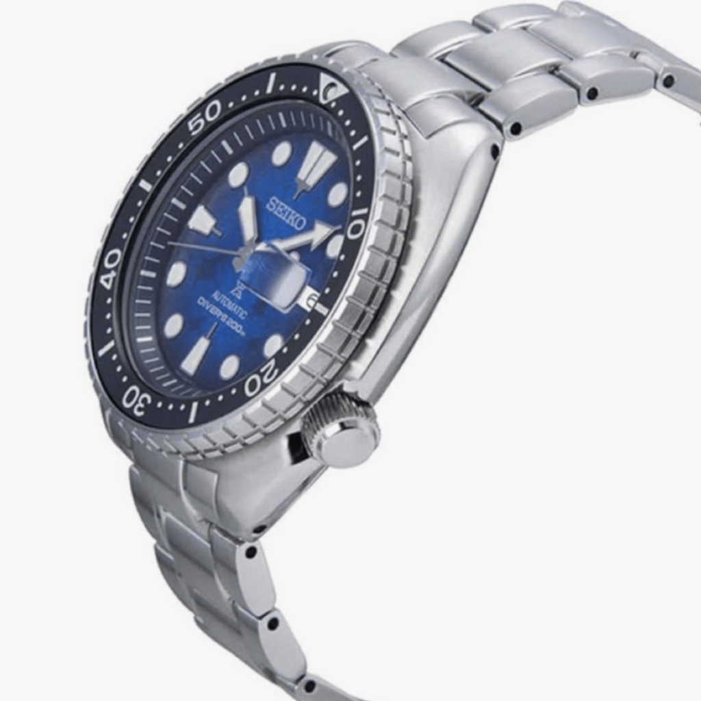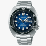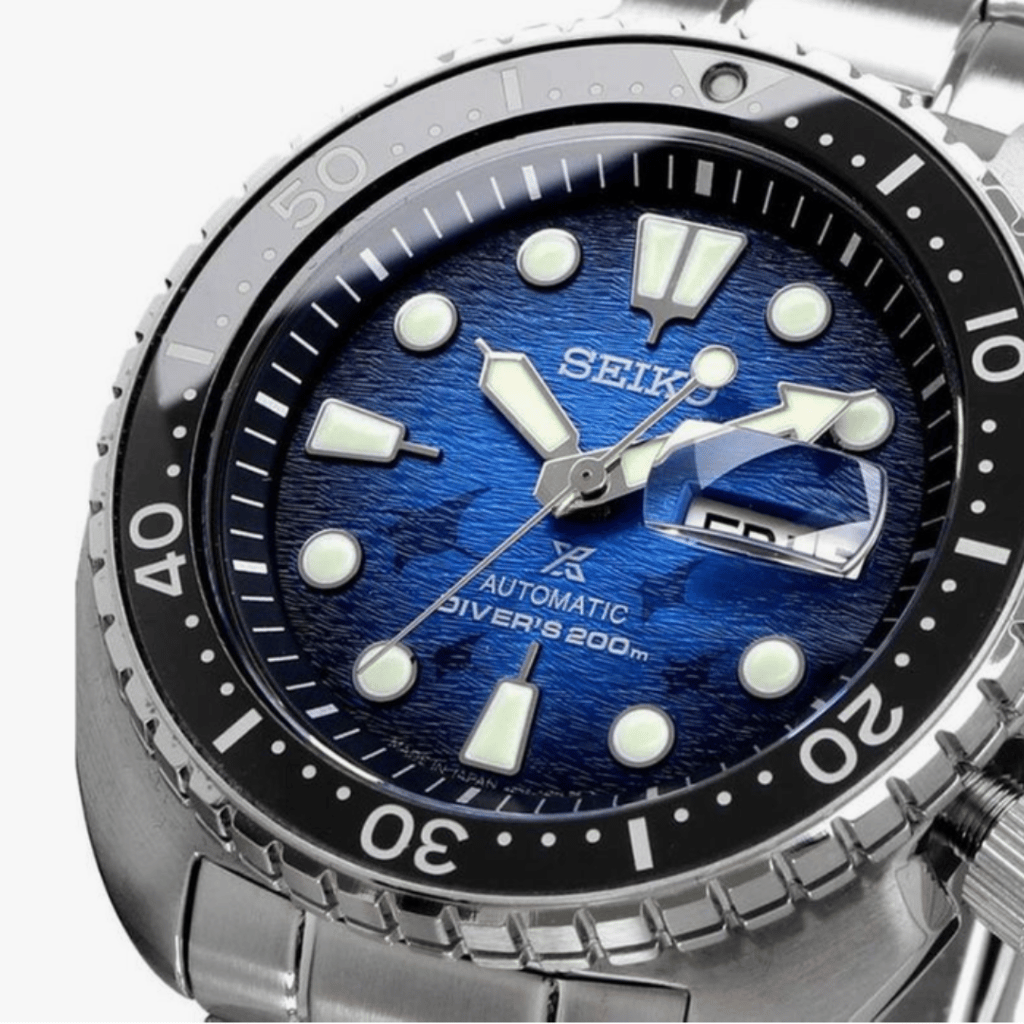 The Seiko Turtle PADI is an iconic diver’s watch, renowned for its bold design and exceptional functionality. This watch is built for professional divers with 200 meters of water resistance. The large cushion-shaped case offers both comfort and durability, while the automatic movement ensures reliable, battery-free timekeeping. The luminescent hands and markers provide excellent visibility underwater, making it a trusted companion for your diving adventures. Nicknamed Save The Ocean, it has an exquisite dial!