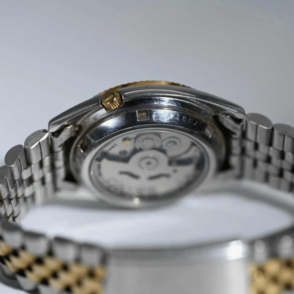 Seiko 5 Sports Datejust – SNXJ89 Was Now ZAR 13,000 Sale This rare Seiko 5 Sports Automatic is a collector’s gem, combining functionality and timeless style. Its striking gold-tone dial is complemented by a distinctive fluted bezel, adding a touch of elegance to the sporty design. With automatic movement, this watch requires no battery and keeps perfect time with the added convenience of a day and date display.Movement: AutomaticCase size: 37 mmFunctions: Day, Date displayCrystal: Mineral glassWater resistance: 3 ATMDelivery contents: Watch, box & papersOther features: Display back Quantity Enter an amount R Add to Cart Add to Cart