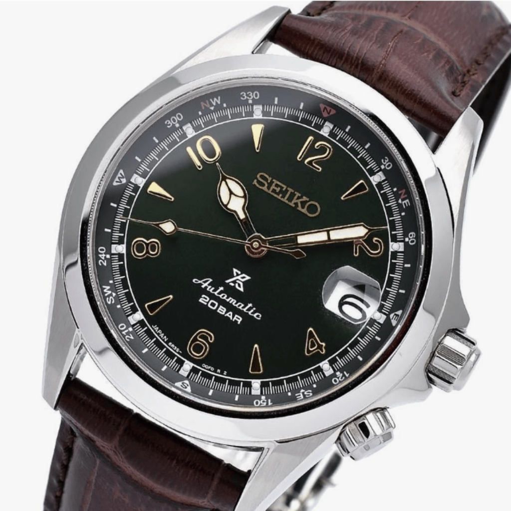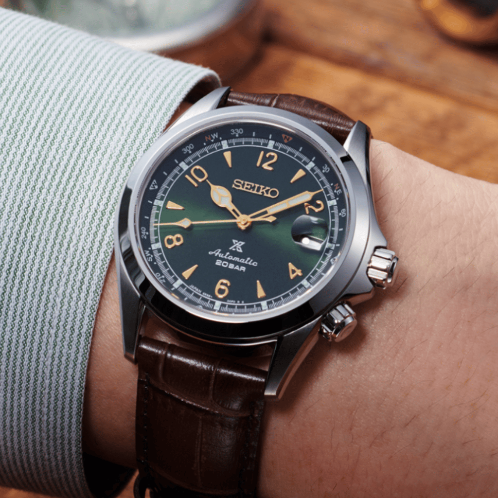 Seiko Alpinist – SPB121J1 Was Now ZAR 13,000 Sale This exceptional Seiko Prospex watch offers a bold design with advanced functionality. Featuring a striking green dial and rotating inner compass bezel, this timepiece is ideal for adventurers and explorers. The automatic movement ensures reliable timekeeping without the need for a battery, while the 20-bar water resistance makes it suitable for outdoor and marine activities.Movement: Automatic, with manual windingCase size: 39.5 mmFunctions: Magnified Date displayCrystal: Sapphire crystalWater resistance: 20 ATMDelivery contents: Watch, box & papersOther features: Rotating inner compass bezel Quantity Enter an amount R Add to Cart Add to Cart